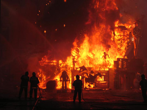 Se puede disfrutar de estas impresionantes escenas durante las siguientes jornadas hasta que, en la noche del 19 al 20, se realiza la cremà, el momento en que arden en medio de un fascinante espectáculo de luz, música y fuegos artificiales. Se queman todas menos un ninot que, elegido por votación popular, se salva de las llamas para formar parte de la colección del Museo Fallero. Otro de los momentos más emocionantes de las Fallas es la ofrenda floral a la Virgen, cuando las comisiones falleras desfilan los días 17 y 18 de marzo y, en honor a la patrona, forman una montaña de flores de 14 metros de altura. Verbenas, cabalgatas, corridas de toros, concursos y otros actos lúdicos completan el programa de estos festejos.