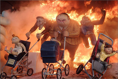 Las Fallas son la fiesta más internacional de Valencia. En un concurso de arte, ingenio y buen gusto, la semana del 19 de marzo la ciudad se llena de gigantescos monumentos de cartón, los ninots. El origen de la celebración se remonta a los parot de los carpinteros: una lámpara de madera con la que iluminaban los talleres en invierno y que quemaban en la calle la víspera del día de San José. Al principio les daban un aspecto humano adornándolos con trapos viejos, pero a mediados del siglo XIX, empezaron a aumentar su volumen y altura y a mejorar sus formas, convirtiéndolas en monumentales muñecos decorativos.